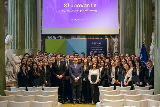 W dniu 11 stycznia 2024 roku 77 nowych doradców podatkowych złożyło ślubowanie i dołączyło do grona Krajowej Izby Doradców Podatkowych. Większość nowych doradców podatkowych to kobiety, natomiast najstarszy z grupy ślubujących ma 53 lata, a najmłodsi ślubujący niedawno ukończyli studia i mają 26 lat.